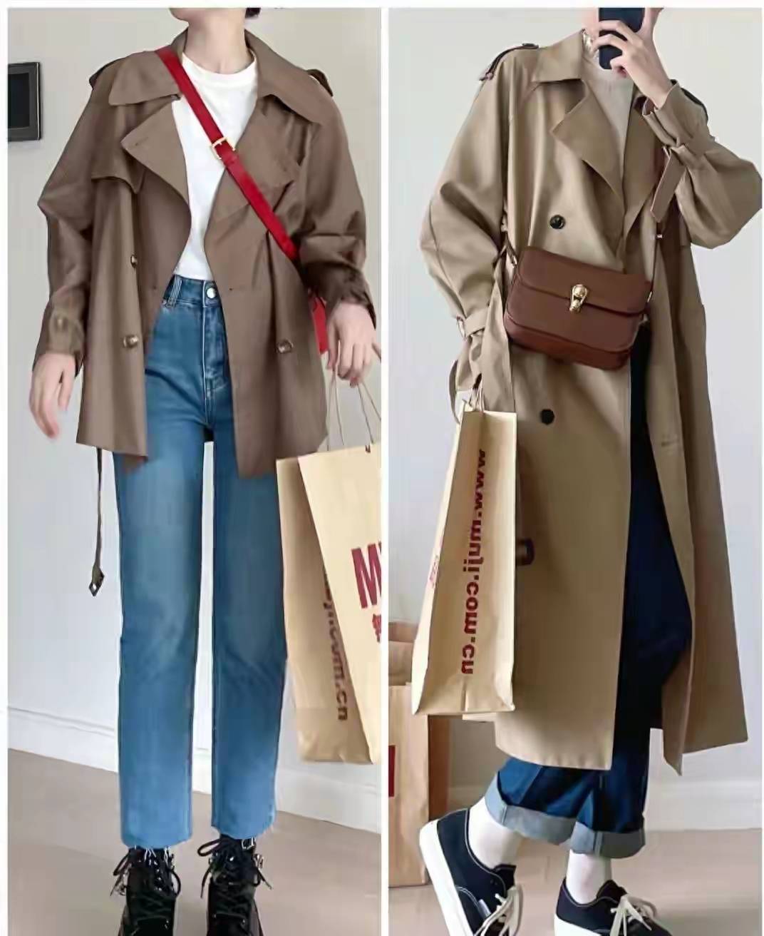 千万不要再穿以下这种土土的风衣外套了,显得又丑又土,就像大妈一样,很难穿出那种高贵的气质,加上下面这种衣服颜色也不够正宗,版型设计也不够时尚,同时也没有很好的搭配技巧,所以才无法穿出那种时尚感。