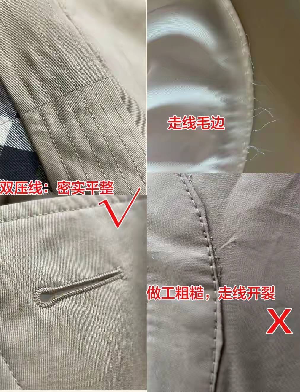 衣服你看做工都知道这件衣服值不值得买?例如你选择的风衣走线毛边,或者是做工粗糙走线开裂,再加上面料很差,很薄,那这样的衣服设计款式再好,穿在身上也无法提升档次。